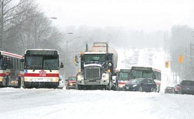 暴風雪令多市全城陸空交通由早上開始嚴重受阻。多倫多公交、私家車等,全都延誤近1小時,有的甚至取消。