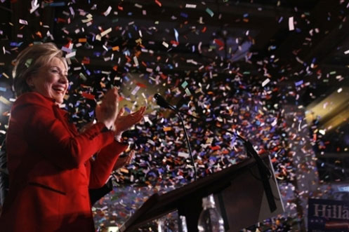 希拉里贏關鍵州初選信心增 誓言將選戰進行到底