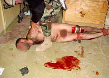 美軍在阿布格拉布監獄對囚犯拳打腳踢。