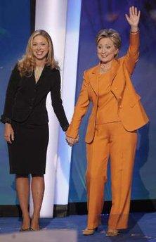 希拉里趁機(jī)推崇她的先生,說民主黨過去的政績?nèi)裼心抗捕,最近的例子就是一九九二年到二零零零年的克林頓政府。全場又是一片歡呼,坐在貴賓席的克林頓聽到笑得非常開心。
