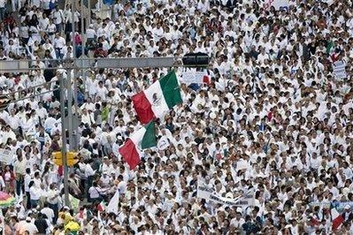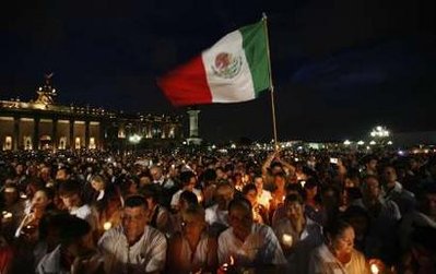 8月30日晚,近20萬墨西哥人身著白衣,手持墨西哥國旗和燃燒的蠟燭,穿過墨西哥城的大街小巷,聚集在市中心憲法廣場,將廣場變成了燭光的海洋。這一名為“讓我們照亮墨西哥”的游行抗議同時在墨西哥32個州舉行。墨西哥民眾呼喊口號,唱著國歌,要求政府立即采取行動制止在這個國家日益嚴重的綁架、火并和殺人等犯罪行為。