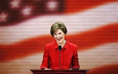 “第一夫人”勞拉出場為布什總統的視訊演講擔任引言。