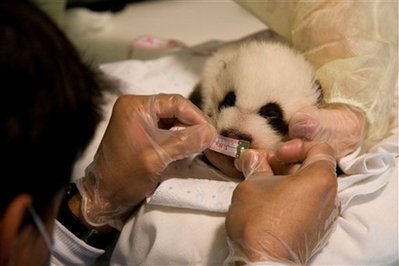 中新網10月22日電 綜合報道,亞特蘭大動物園的獸醫21日給一只滿月的大熊貓幼仔做體檢。