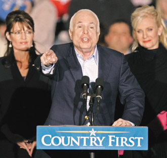 中新網10月24日電 美國總統選戰進入最后沖刺階段,共和黨策士難以決定候選人麥凱恩該打什么牌以力挽狂瀾之際,麥凱恩22日痛批布什的不是,企圖挽回選民的心。據臺灣《聯合報》報道,這是選戰開打以來,麥凱恩對布什最嚴厲最直接的批判,試圖與布什劃清界線的用意非常明顯。