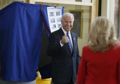 中新網11月5日電 綜合報道,當地時間11月4日,美國民主黨副總統候選人拜登在特拉華州威爾明頓附近的塔特納爾學校參加大選投票。