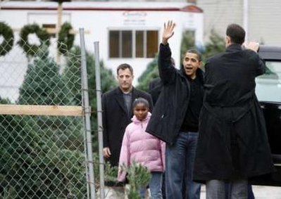 奧巴馬當天帶兩個女兒和女兒的一個朋友,到芝加哥南區一個圣誕樹市集上,物色今年家里要用的圣誕樹。