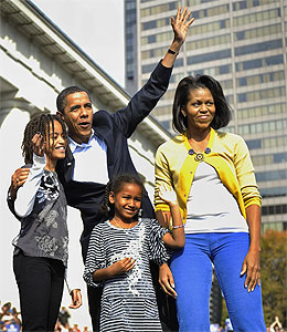 華盛頓當(dāng)?shù)貢r(shí)間1月3日,在情報(bào)安全人員的護(hù)送下,美國候任“第一夫人”米歇爾·奧巴馬和兩個(gè)女兒瑪莉婭和薩莎離開芝加哥正式搬往華盛頓,為寶貝女兒即將開學(xué)做準(zhǔn)備。5日是兩位“第一千金”的開學(xué)第一天,她們將在安全人員的保護(hù)下進(jìn)行一系列入學(xué)體檢。有媒體披露奧巴馬一家暫時(shí)住在“海-亞當(dāng)斯飯店”,媒體稱,新任“第一家庭”離白宮越來越近了。