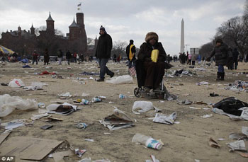 奧巴馬就職典禮儀式后,人們丟下的垃圾則給華盛頓的環衛工人留下一個難題。
