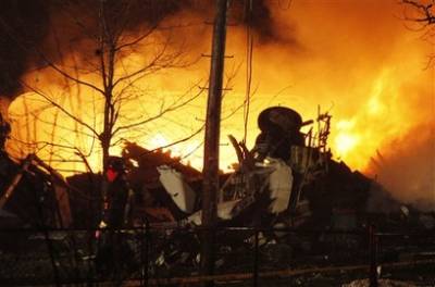 民航官員說,這架飛機是在當地時間12日晚上22點10分(北京時間13日13點10分)撞向布法羅東北郊區克拉倫斯的房屋。電視臺畫面顯示多所民房立即被大火吞噬。克拉倫斯緊急服務處主管表示,一名地面人員也在事件中死亡。美國有線電視網報道,地面有兩人受輕傷被送往附近的醫院治療。