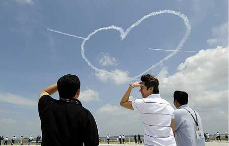 "天邊一顆心":特技飛行隊(duì)新加坡航展精彩亮相(圖)