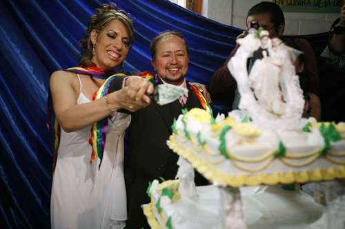 中新網(wǎng)5月19日電 一對(duì)均做了變性手術(shù)的新人17日在墨西哥城舉行婚禮,成為該國(guó)有史以來(lái)第一對(duì)合法結(jié)婚、組織家庭的變性人。墨西哥一向是一個(gè)作風(fēng)保守、堅(jiān)持傳統(tǒng)價(jià)值觀的國(guó)家,但在外來(lái)文化和思潮影響下,很多守舊觀念已被打破,這宗婚事便是其中一個(gè)鮮明例子。