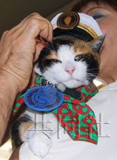中新網7月22日電 共同社報道,日本和歌山電鐵貴志川線貴志車站的超級站長——9歲的雌貓“阿玉”20日領取了她的“獎金”:一頂夏季制服帽和一張專用床。
