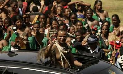 據(jù)香港明報(bào)報(bào)道,姆斯瓦蒂三世(Mswati III)穿著傳統(tǒng)服飾,趾高氣揚(yáng)乘著新款黑色開(kāi)篷寶馬,率領(lǐng)長(zhǎng)長(zhǎng)的車隊(duì),在首都新建的國(guó)立體育館內(nèi)巡游一周,接受5萬(wàn)觀眾的旗海歡呼。