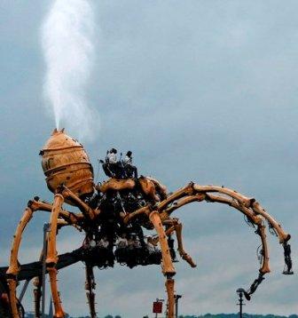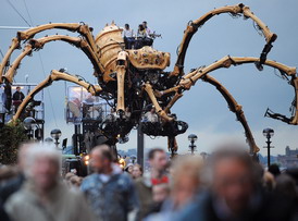 據悉,這只巨蛛由法國藝術家策劃并耗時18個月在法國制作,最后在英國某地秘密組裝而成。這只機械蜘蛛通過多人控制,每個腳都有著細膩的機械表現,甚至可以輕柔到用腳和你的雨傘打招呼,它每小時可以爬行3.2公里(2英里)。 行人紛紛駐足觀看這一“自由劇場”秀。