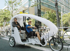 東京街頭的三輪出租車“Velotaxi”很受外國游客的歡迎。(共同社圖)