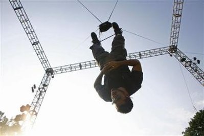 中新網9月25日電 魔術師戴維布萊恩24日在紐約完成倒吊六十個小時的嚴峻考驗,但是部分民眾抱怨這位幻術家模仿蝙蝠俠的企圖不過是個假象。