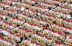 20日下午,數(shù)千人齊聚韓國首爾廣場,腌制出143噸韓國泡菜———堪稱世界上最大份的泡菜。這是一項(xiàng)慈善活動(dòng),泡菜將被分發(fā)給首爾的窮困家庭。