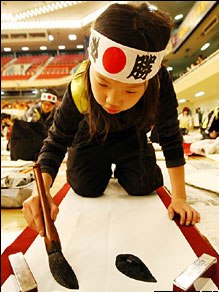 中新網(wǎng)1月6日電 綜合報(bào)道,日本一年一度的新年書(shū)法比賽5日在東京舉行,大約有3000名經(jīng)過(guò)地方選拔的選手參加了比賽。