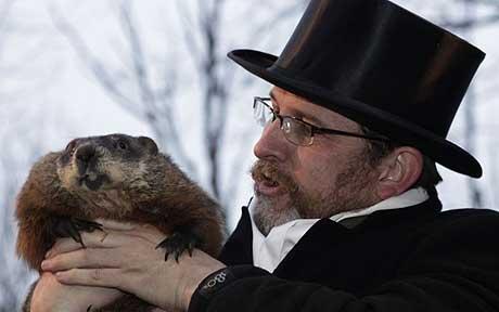 今年的2月2日,13000名觀眾聚在在賓夕法尼亞州的小鎮旁蘇托尼(Punxsutawney)觀察一只名叫“菲爾”的土拔鼠的行為。“菲爾”是官方指定的土拔鼠氣象預測員,2月2日早晨,“菲爾”被工作人員弄出洞,面對眾人和媒體,尋找自己的影子,然后將預測結果告訴鎮上帶高帽的老人比爾·庫柏,再由他向大家宣布預測結果。據說,庫柏是世界上唯一一個懂土拔鼠語言的人。這一天天氣晴好,土拔鼠“菲爾”看到了自己的影子,那么預示著美國的冬天還要持續6個星期。根據旁蘇托尼土拔鼠俱樂部的記載,自1887年起,菲爾看到過自己的影子達97次,沒看到的有15次,有9年沒有記錄。這個小鎮今年吸引了來自日本、冰島和埃及的游客,小鎮聲稱菲爾的預測從來就沒有失誤過。