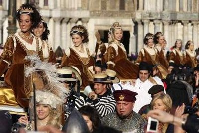 中新網2月16日電 據英國媒體報道,參加威尼斯狂歡節的游行隊伍15日行進在圣馬可廣場上。