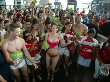 中新網2月18日電 據巴西媒體報道,17日是巴西的內衣節,巴西首都巴西利亞的一座公共汽車站,一群身穿性感內衣的模特招搖過市,吸引大批路人注目。