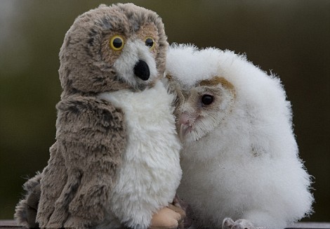 據(jù)英國《每日郵報》報道,一只僅有數(shù)周大的谷倉貓頭鷹孤兒與一個貓頭鷹填充玩具成了好朋友。