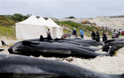 澳大利亞80只鯨魚和海豚擱淺海灘 多數已死(圖)