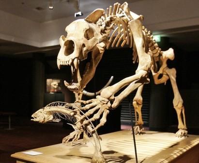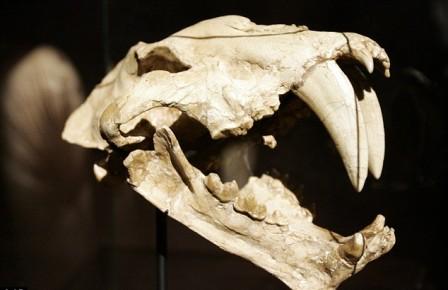 一頭正獵捕食草動物岳齒獸的劍齒虎的骨架也被拿出拍賣,它生活在距今2350年至5300萬年前,估價在11萬英鎊左右。