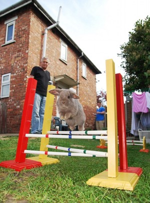 中新網5月4日電 對于一般人家的兔寶寶來說,每天最愜意的事莫過于睡睡懶覺或是啃啃胡蘿卜;然而英國哈斯拉姆家六只寵物兔的生活卻不落俗套,據英國《每日郵報》1日的報道,在主人的指導下,這六只小兔每天都要接受“跨欄”訓練,它們還滿懷信心的要去參加寵物比賽。