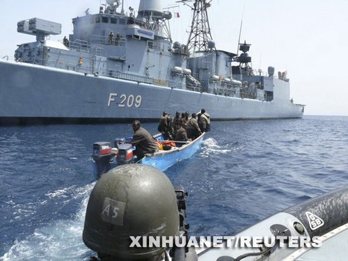 德國軍方3日在首都柏林說,德海軍當(dāng)天在索馬里附近海域的亞丁灣擊退一次海盜襲擊并抓獲9名海盜。