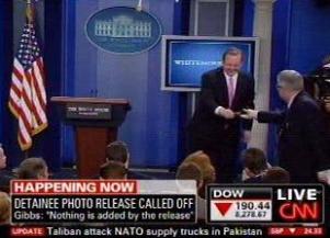 據(jù)美國媒體5月13日報道,白宮13日中午舉行的新聞發(fā)布會進行的很激烈,美國有線電視新聞網(wǎng)記者埃德-亨利、美國廣播公司記者杰克-塔皮爾和其他記者紛紛對白宮發(fā)言人吉布斯提出尖銳問題,質(zhì)疑奧巴馬總統(tǒng)13日作出的將設(shè)法阻止公布美軍虐囚照片的決定。不過,發(fā)布會的緊張氣氛由于手機鈴聲多次響起而得以在短時間內(nèi)得到緩解。