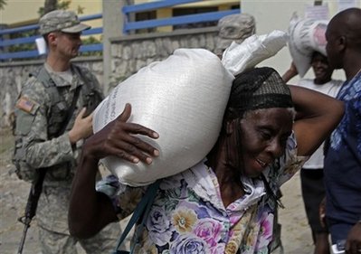 中新網(wǎng)2月1日電 在海地發(fā)生強(qiáng)烈地震將近三周后,聯(lián)合國(guó)開始在該國(guó)首都太子港展開一項(xiàng)大規(guī)模分派糧食的計(jì)劃。據(jù)英國(guó)廣播公司報(bào)道,太子港已設(shè)立了16個(gè)定點(diǎn)糧食分發(fā)站,目的是為了在未來(lái)兩周內(nèi)把糧食分發(fā)到兩百萬(wàn)人手中。