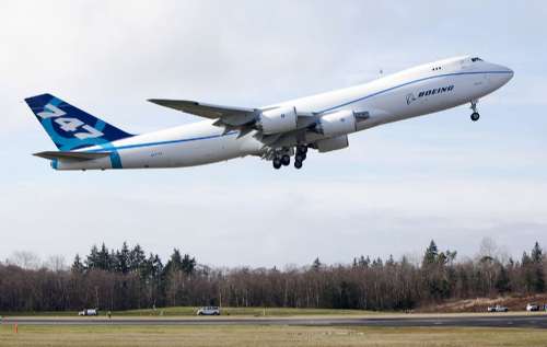 該型貨機售價超過3億美元,目前已有76宗訂單,買家包括香港國泰航空公司。首架747-8型貨機和客機分別預定于今年底和明年底交付。此次試飛比原訂計劃推遲了一年,機師測試了基本操作和發(fā)動機性能,飛行時速達到425公里,飛行高度可達5180米。波音稱,與波音747飛機相比,747-8機型容量更大、成本更低、更環(huán)保。