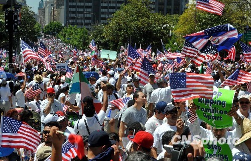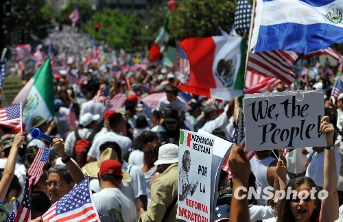 洛杉磯市墨西哥裔市長維拉萊戈薩現身游行現場,他以祖父從墨西哥移民美國的故事告訴大家追求美國夢是每位移民的權利,他旗幟鮮明地反對亞利桑那州的新移民法,并呼吁聯邦政府加快移民改革步伐。美國國會華裔眾議員趙美心向數萬民眾發表演說,“我們現在就要全面的移民改革!”趙美心等國會議員最近發起推動的一項移民議案得到了絕大多數拉丁裔移民家庭的擁護。