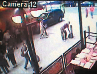 紐約警方在距現場半個街區的閉路電視錄影中,發現一名懷疑是疑兇的白人男子。片段中,男子一邊回頭望向涉案日產Pathfinder的方向,一邊脫掉深色T恤,露出里面的紅色T恤,然后將深色T恤放入手提包后離開。