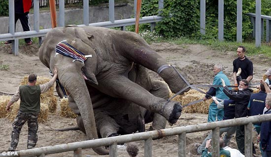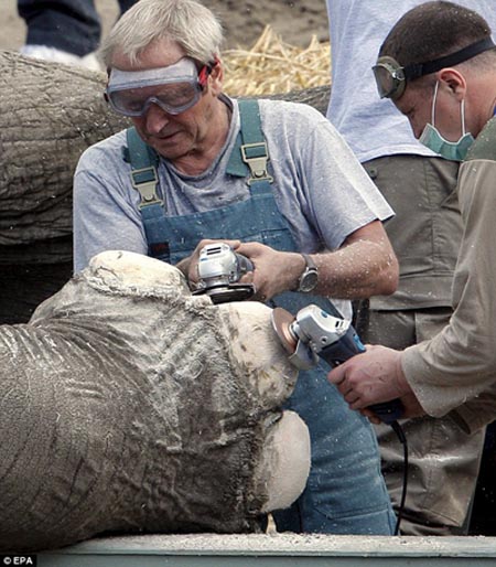 這只名為“男孩”的亞洲象今年已經39歲了,他的腳趾甲太長了以至于他一直感覺很不爽,動物園的工作人員看在眼里疼在心上,專門花重金從德國請來一名獸醫和他的多位助手,為“男孩”修理指甲。