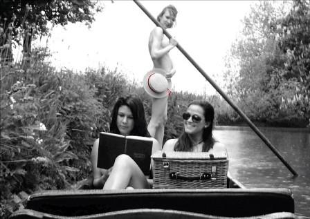 在7月號(hào)的掛歷上,是3名女學(xué)生早晨在法國中部的謝爾河里一絲不掛地劃船。