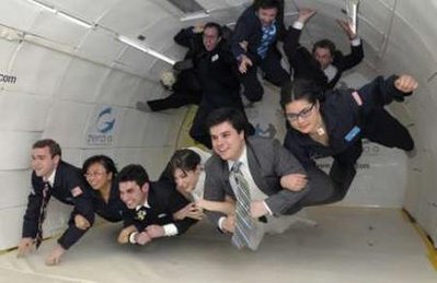 飛機從佛羅里達州泰特斯維爾起飛,在墨西哥灣上空飛行的一個小時期間,以拋物線的方式飛行,先后16次疾升俯沖,每次產(chǎn)生30秒的無重力狀態(tài),使所有乘客感受總共7分鐘半的失重狀態(tài),凌空漂浮和互相碰撞。