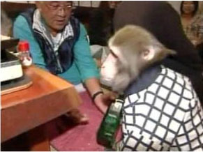 據(jù)臺灣“今日新聞”報道,日本古色古香的居酒屋,除了滿滿的人潮外,這里的服務(wù)生也是店里一大特色。老板飼養(yǎng)的猴子轉(zhuǎn)身一變成為店內(nèi)招牌服務(wù)生,讓民眾用餐感覺大不同。小猴子穿上跟員工一樣的格子制服,拎著酒瓶幫客人倒酒,意外受到顧客歡迎,還有民眾表示,“小猴子有些動作,甚至做得比人還好!”使得居酒屋的業(yè)績暴增2成以上。