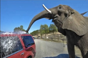 中新網9月25日電 許多民眾在洗車時乏味又耗時間,但在美國一家野生動物園卻讓洗車變得超級有趣,因為他們派大象來幫忙洗車,民眾不但可以讓愛車變干凈,還可近距離觀察大象。