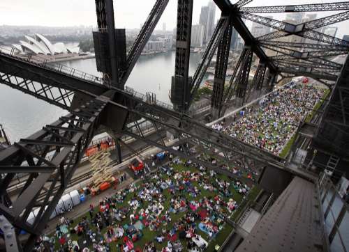 悉尼大橋變草坪 6000人共享早餐規模最大(圖)