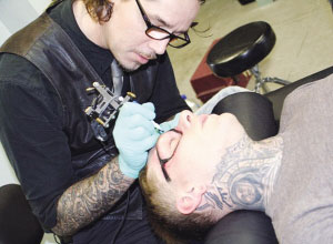 據悉,馬修除了面部外,幾乎全身上下都文滿了各種五花八門的文身圖案,馬修甚至連脖子上都文滿了圖案,使他看起來就好像穿了一件高領內衣一樣。而這段“文眼鏡”視頻顯示,一名文身藝術家竟用電動文身針在馬修的眼睛部位文了一副和真眼鏡大小一模一樣的黑框眼鏡,令馬修看起來就像真的戴了一副“黑框眼鏡”一樣!