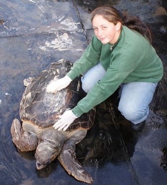 據報道,這只估計約40歲的紅海龜(又稱蠵龜)體重達9英石(約57.1公斤),長3英尺,是一只大海龜。它在一次可怕的事故當中雙眼失明,從此無法養活自己,也沒辦法辨識方向。此外,這只海龜還屬于瀕危動物,同類的數量不斷減少。