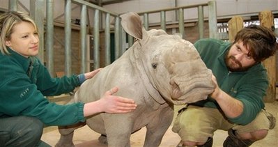 據報道,2009年12月21日,英國愛丁堡北部的布萊爾德拉蒙德野生動物園(Blair Drummond Safari Park)接到一個匿名電話,電話那端的女子表示,自己是塞浦路斯人,在通過網絡攝像頭看動物園的實時拍攝情況時發現,一只懷孕已經16個月的犀牛媽媽即將臨盆。