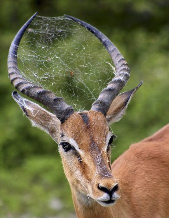 所羅門說,羚羊肯定是在公園里游逛時,無意之中兩角掛到了懸在某處的蜘蛛網,并將網和蜘蛛一同載走,一直掛在角上。