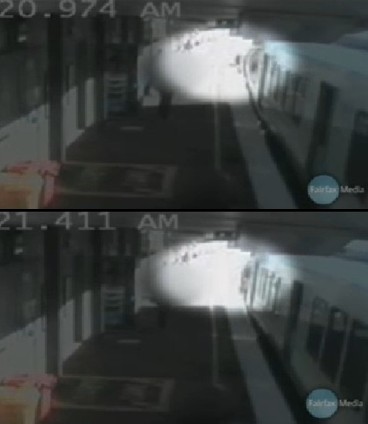 站臺上,嬰兒和祖母以及乘客們都被這一幕驚呆了,目瞪口呆,過了一會兒才知道朝站臺邊緣跑去。