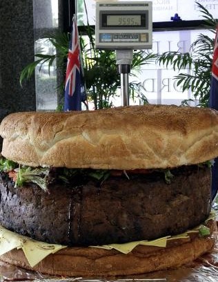 中新網6月8日電 據英國媒體報道,7日,澳大利亞一家咖啡廳打破了一項世界紀錄——他們用81公斤的肉餅制作了一個漢堡包,這個漢堡包的烹制時間長達24個小時,得用四名男子才能搬動。