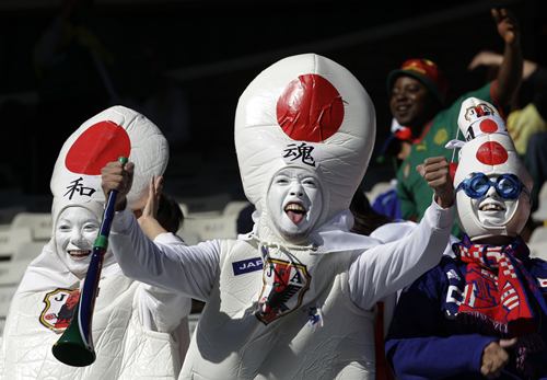 不過(guò),除了這些美女,世界杯賽場(chǎng)的女球迷也以一些令人匪夷所思的造型出現(xiàn)在公眾面前。報(bào)道指出,以日本女球迷為例,全身“裹粽子”般包得緊緊地,如同將相撲的服裝穿在身上,令人看不懂她們追求的效果是什么。看上去,她們的造型像是“安全套”,又像是保齡球瓶,和足球賽仿佛搭不上調(diào)。不過(guò),唯一能確定的是,她們?cè)诙斓哪戏菓?yīng)該不會(huì)受涼。