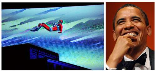中新網6月21日電 一段把美國總統奧巴馬描繪成排除萬難的超級英雄大加諷刺的音樂錄像,19日在美國的電臺及電視臺派員協會周年晚宴上播放。有份列席的奧巴馬觀賞這段錄像時笑得合不攏嘴。