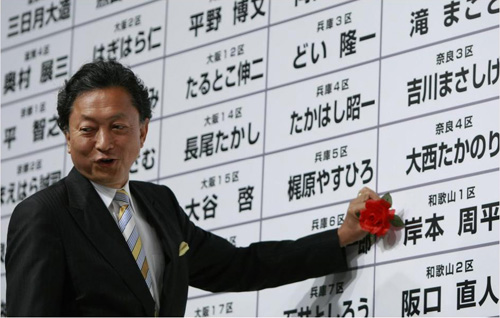 中新網8月31日電 綜合報道 在30日結束的日本第45屆眾議院選舉中,最大在野黨民主黨獲得眾院總數480議席中的308席,而執政的自民黨只獲得119席。這意味著民主黨代表鳩山由紀夫擔任首相的新政權即將誕生。據悉,最快將于9月中旬召開的特別國會將提名鳩山出任首相。